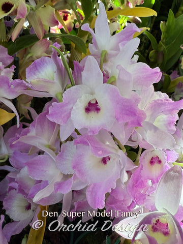 Den. Super Model 'Fancy' – A lovely pink nobile type Dendrobium hybrid. The flowers intensify in color and larger over time. They opens from bright pink, then change to lavender with sweet fragrance. These flowers can last from 6 to nine weeks in a cool condition.